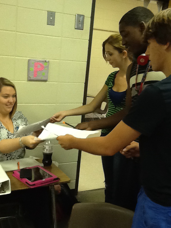 Competition can sometimes drive learning!  This is the winning team handing in their papers to my student teacher.