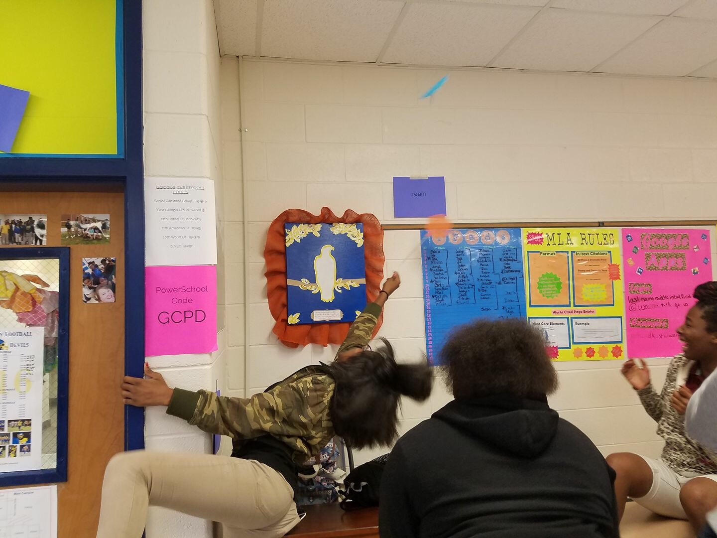 I am warning you in advance that if you choose to use this game, your teenagers will become engaged and maybe loud. This was one of my students’ favorite games that we played last year (as you can see by the classroom decor and the kids’ ages). It also is super competitive and requires a lot of hyper movement but for only two kids at a time. If you’re a fuddy duddy, this game is not for you.