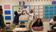 The teams will each send one Swatter forward at a time. My swatters stand on the game line I made on my classroom floor with electrical tape while I am reading the clue. Once I read the clue, I say “go!” and the students compete to see whose fly swatter will touch the correct answer first.